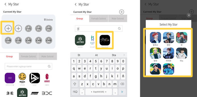 Paso 4. Agrega a tu estrella,en el símbolo de "+" busca a SKZ y selecciona a tu bias.